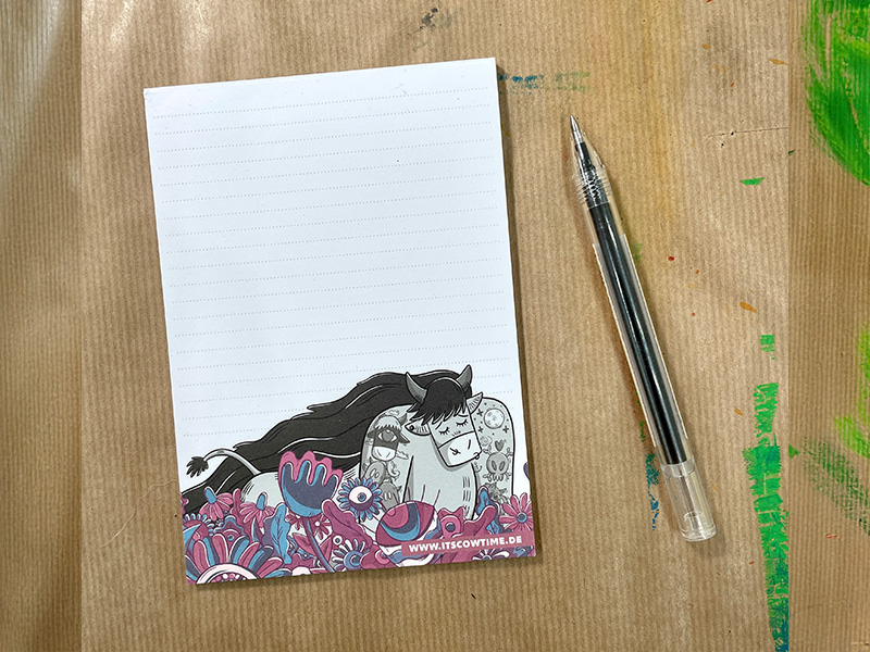 Liebevoll gestalteter DIN A6 (10,5 x 14,8 cm) Block mit Leimbindung und 25 Seiten für kuhle Alltagsnotizen
