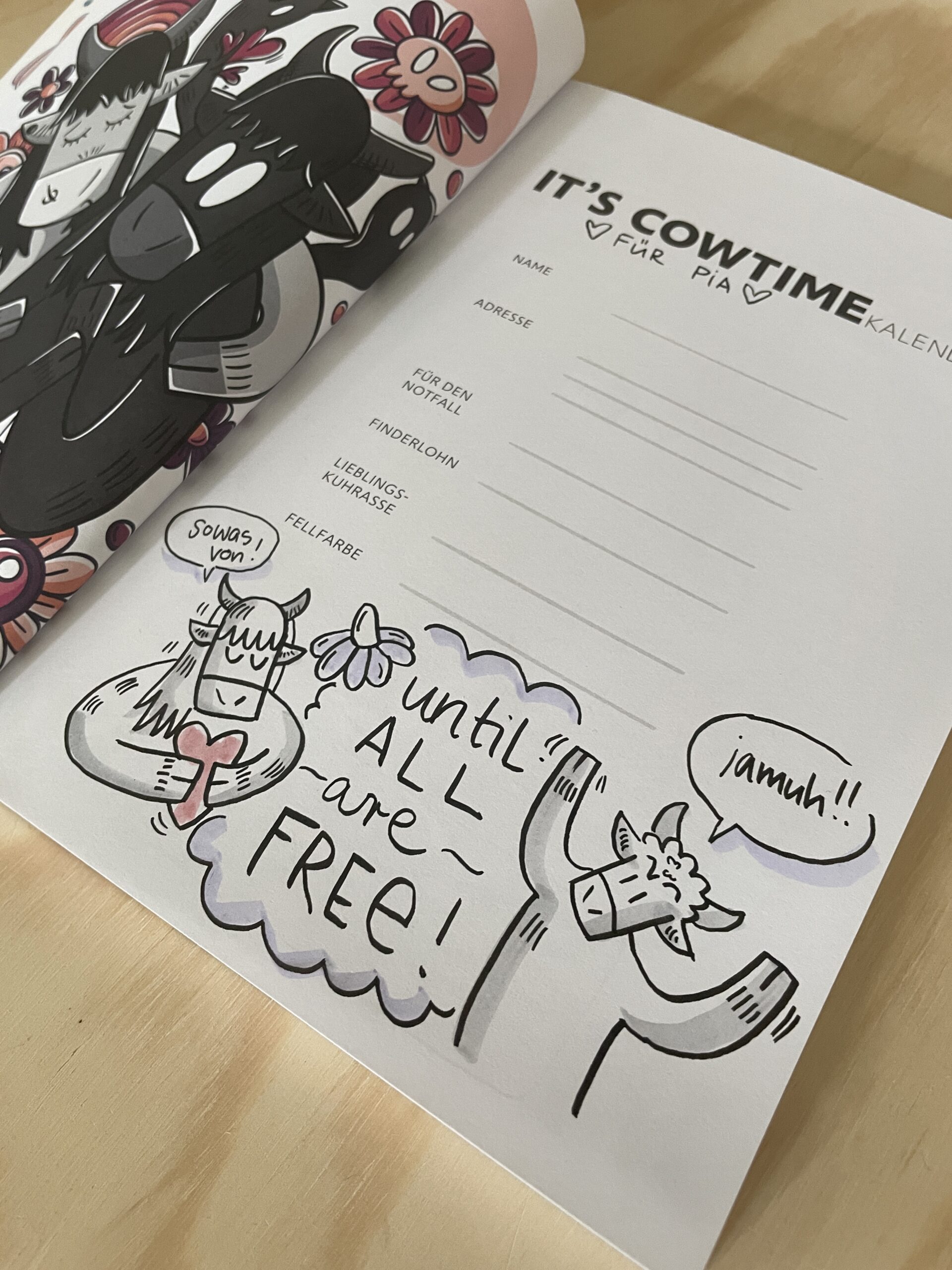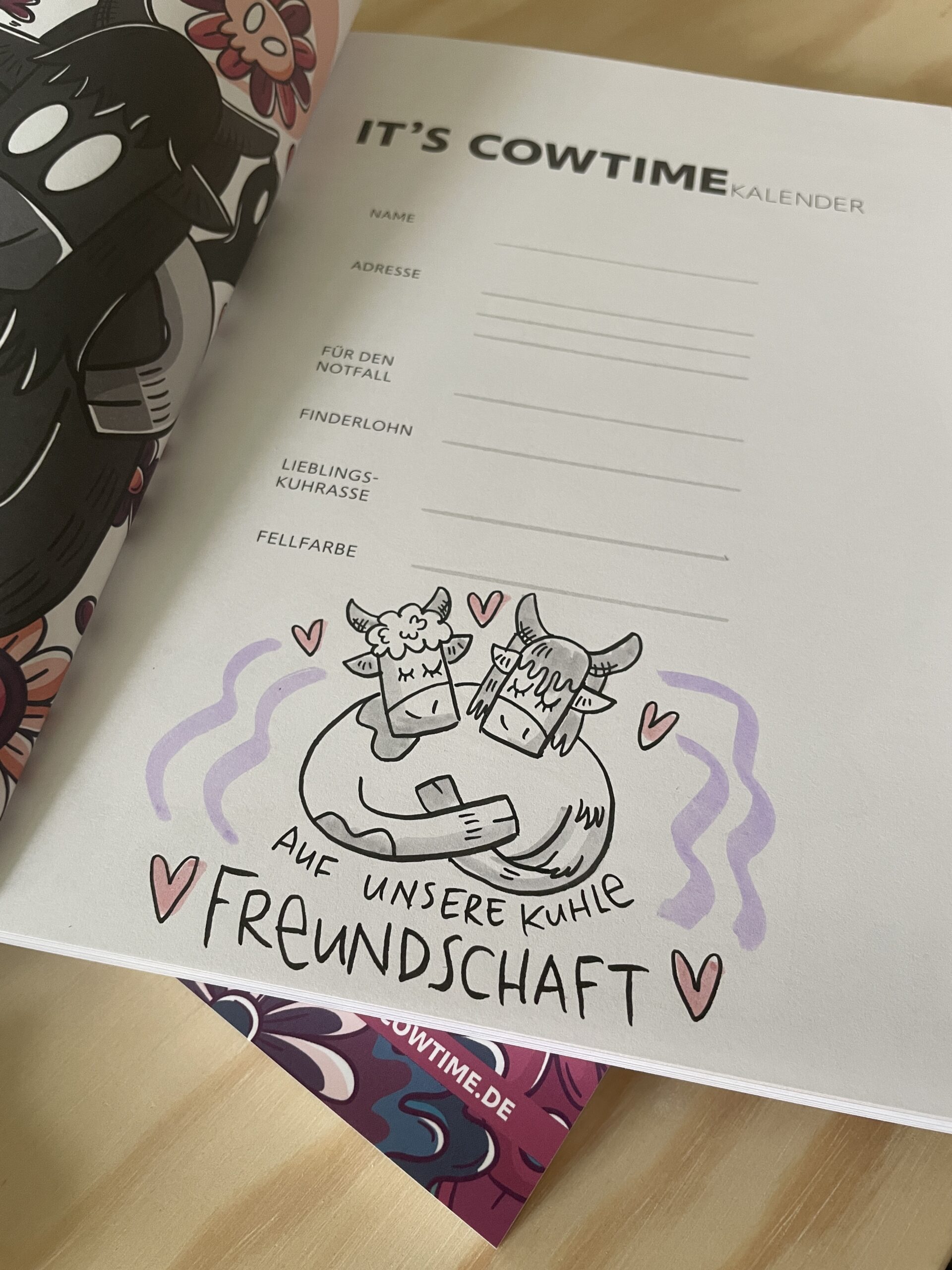 Ein Kalender im handlichen A5 Format mit Softcover sowie nachhaltig & vegan gedruckter kuhler Kalender. Schreib mir am Ende der Bestellung was Du Dir als kleine kuhle Widmungsillustration wünscht.